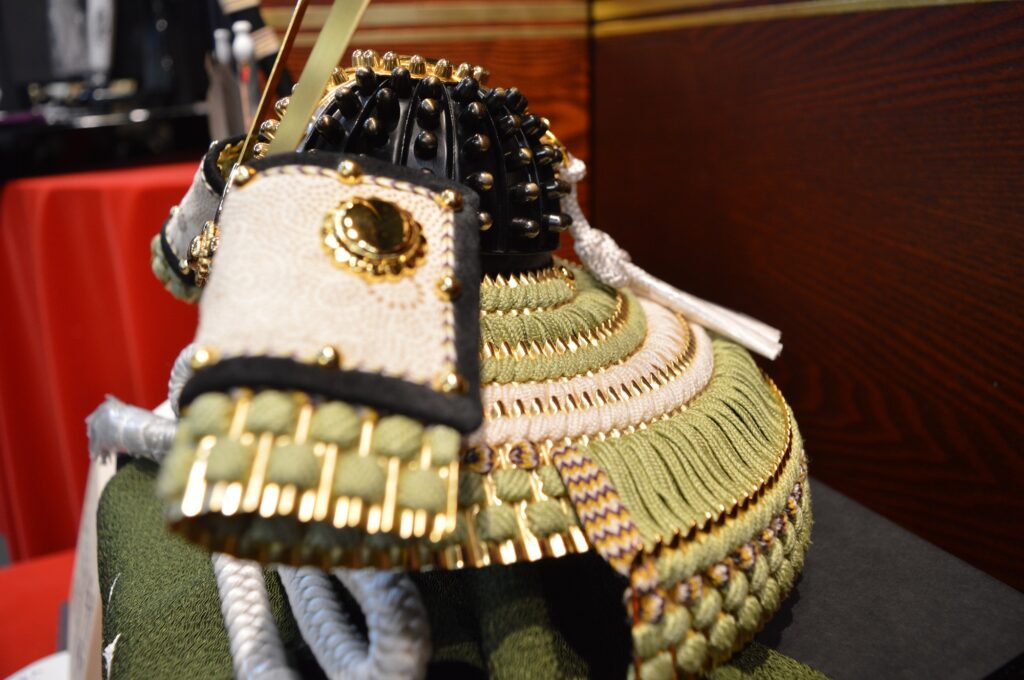 この兜も緑色の糸を使用していますが、