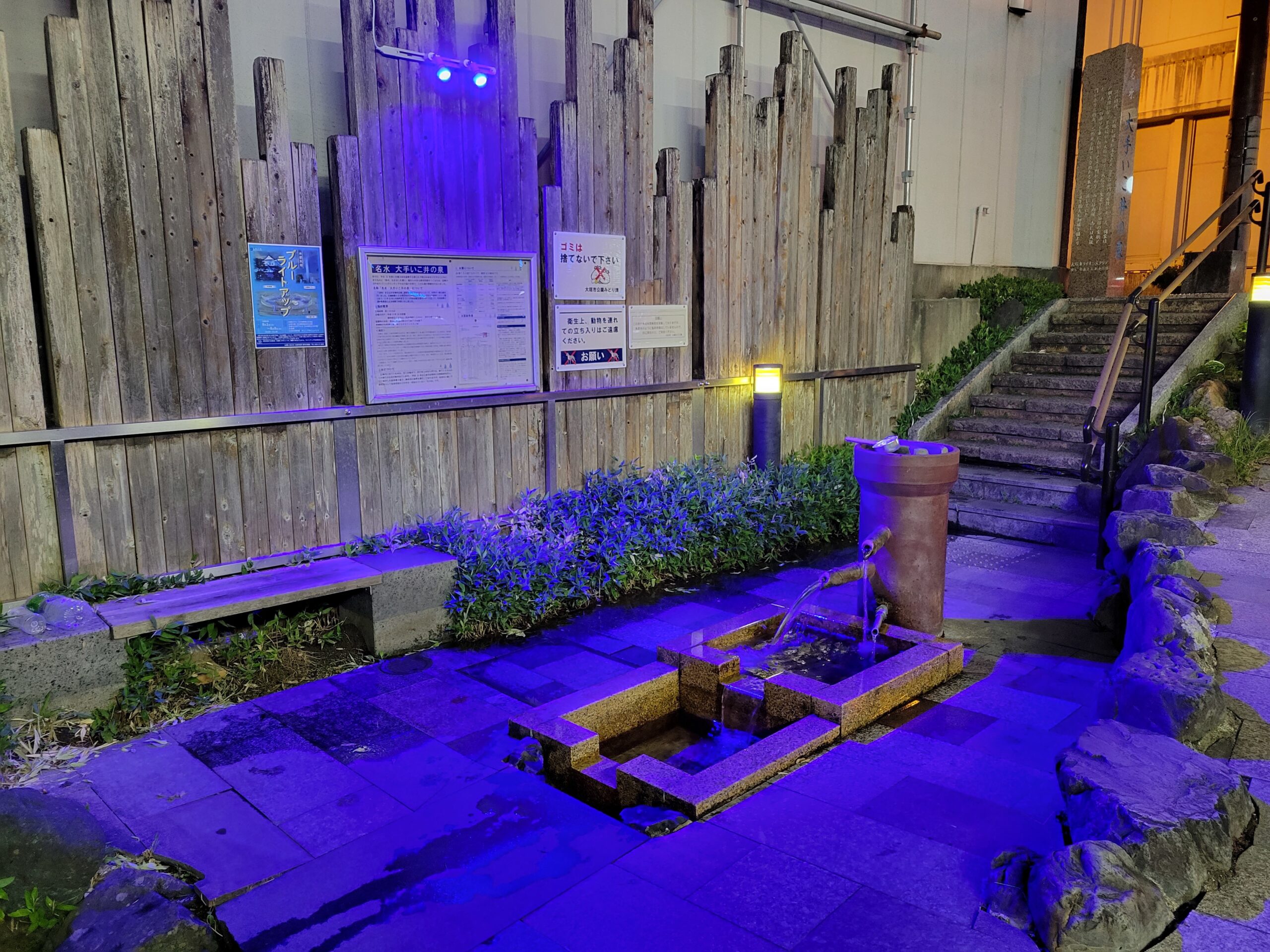 ところどころで青く涼しげなライトアップがされています。