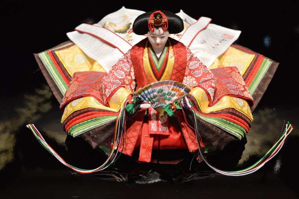 十二単の襲は、色々重ねという艶やかな仕上げとなっています。